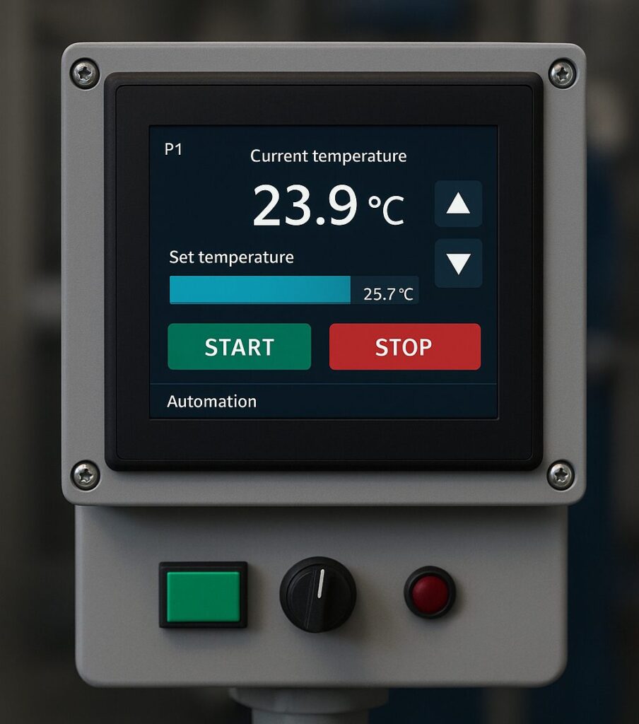We combine HMI display, PCB control board, sensor I/Os, valve and motor outputs into a single compact unit. This eliminates the need for a separate enclosure, reducing costs, simplifying wiring, and shortening assembly time.
